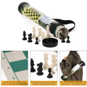 تأتي هذه اللعبة بحصيرة مرنة 💚 يمكن لفّها بسهولة داخل الأنبوب المحمول 🎒، ما يجعلها مثالية للتنقل أو البطولات. القطع البلاستيكية المتينة ♜♞ مصممة لتوفير تجربة لعب احترافية على رقعة مقسّمة وواضحة 🔢.